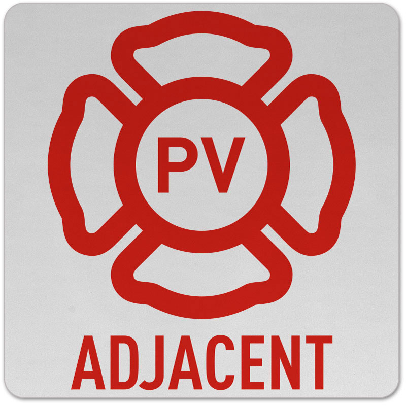 To comply with the new State of NJ rule for "Identifying emblems for structures with solar panels", the sign is larger than 6" to accommodate the 1/2" (13mm) stroke as well as the 1.25" (32mm) text size requirements for Adjacent.