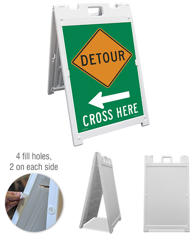 This Detour Cross Here Sign is ideal for keeping your construction areas safe, alert pedestrians of sidewalk closures and direct them to a safe way across. Sidewalk Closed Sign is also perfect for temporarily marking Detour routes and easily guide drivers.