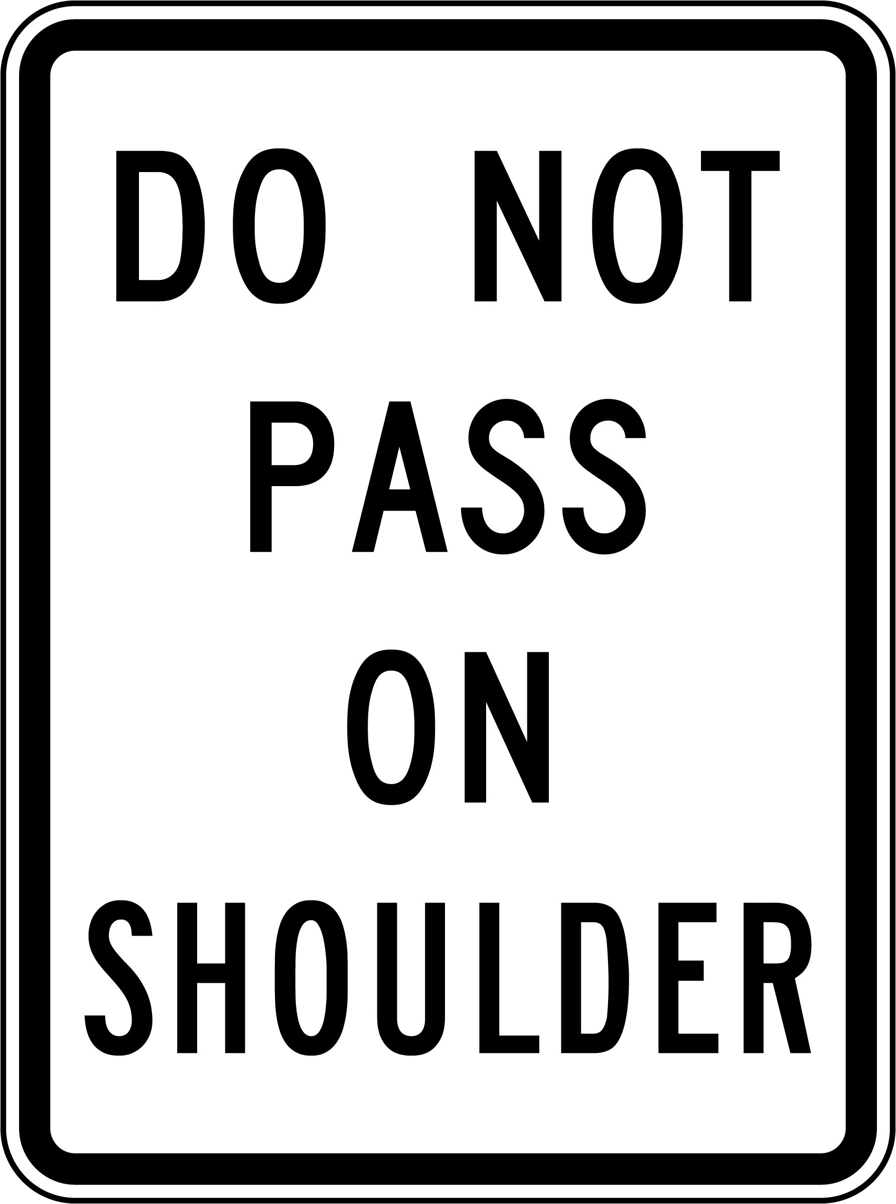 Our Do Not Pass On Shoulder Sign warns drivers that using the shoulder to pass other vehicles is prohibited. This sign helps prevent unsafe driving practices, reducing the risk of accidents and maintaining proper road usage. It is often placed on highways and rural roads where shoulder use is restricted.