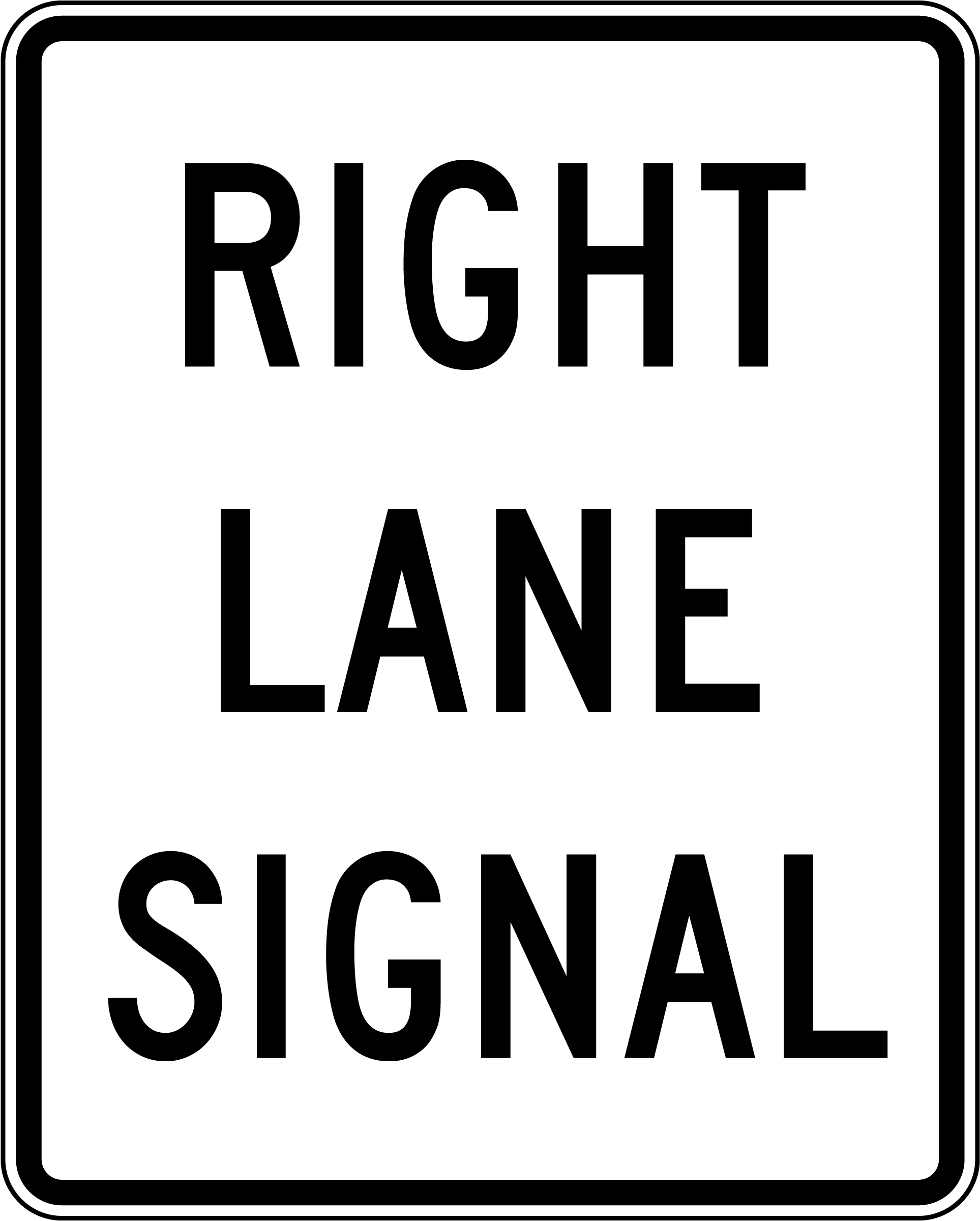 Our Right Lane Signal Sign informs drivers that traffic in the right lane is controlled by a specific signal. It helps improve traffic flow by ensuring motorists follow designated lane signals an intersections. This sign is often used at multi-lane intersections and roadways with separate lane controls.