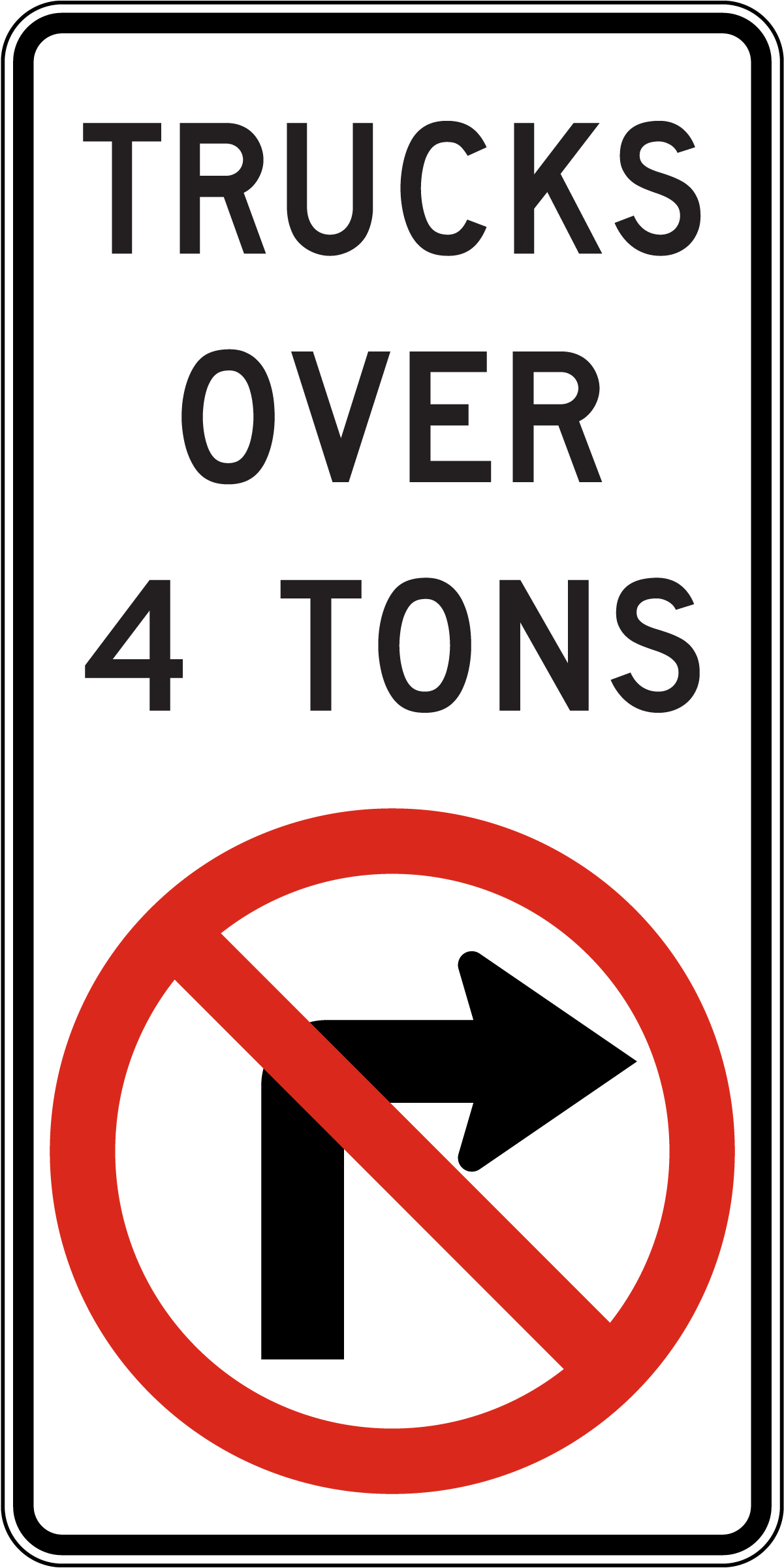 This Trucks Over 4 Tons Right Arrow Sign directs heavy vehicles over four tons to turn right, ensuring compliance with designated truck routes. By guiding larger vehicles away from restricted areas, this sign helps reduce congestion and improve traffic safety. It is commonly found near truck detours, restricted roadways, and industrial zones.