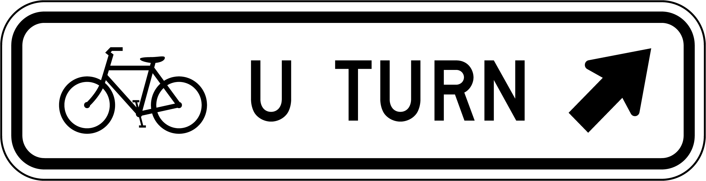 This Bicycle U Turn Upper Right Arrow Sign designates a specific path for cyclists making U-turns. It helps ensure cyclists follow safe and legal turning procedures, particularly in high-traffic areas. This sign is typically installed near bike crossings and designated U-turn zones.