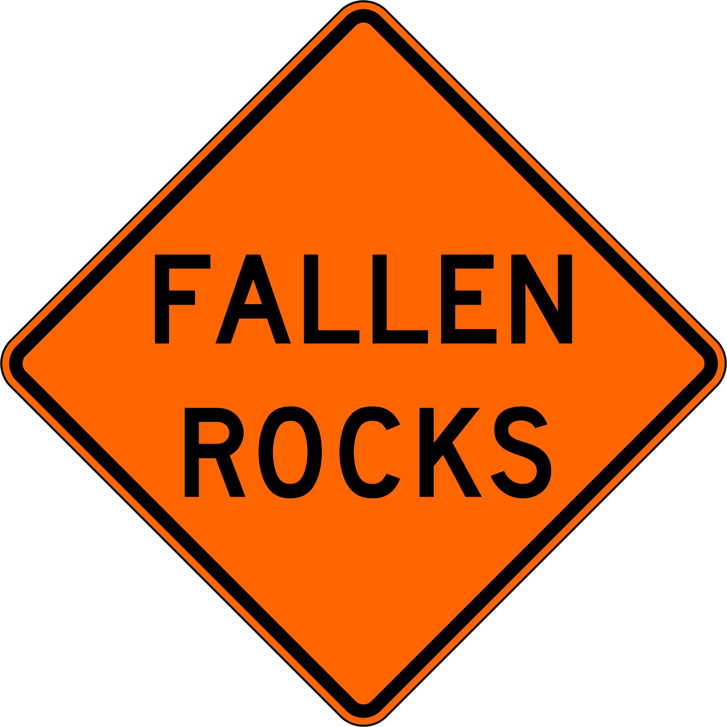 This Fallen Rocks Sign alerts motorists to the potential danger of loose or falling rocks on the road, especially in mountainous regions or near rock formations. By providing advance warning, this sign encourages drivers to remain vigilant, reduce speed, and be prepared for unexpected obstacles. Commonly found along winding roads and steep inclines, this sign is crucial for preventing accidents caused by rockslides or debris.
