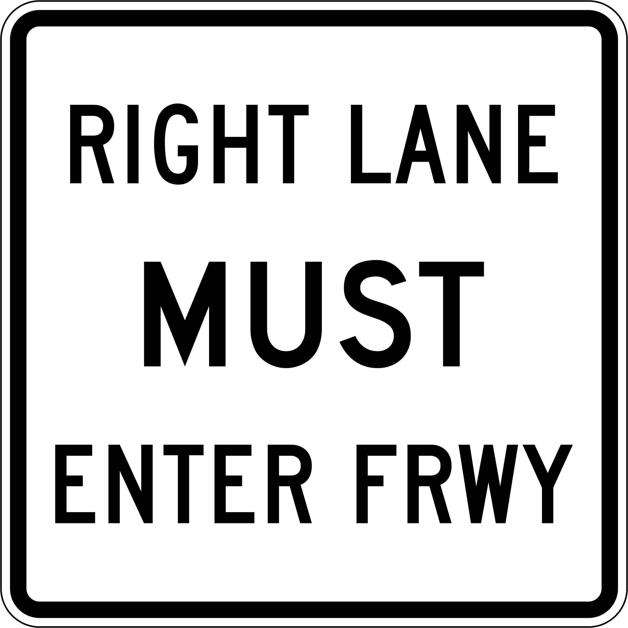 Our Texas Right Lane Must Enter Freeway Sign requires right-lane traffic to enter the freeway ahead. It clarifies expectations so drivers can position early and merge smoothly. Made for continuous service, it maintains clarity through years of use.