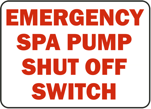 The New Jersey Spa Pump Shut Off Sign has informational messages for property and swimming policy concerns. The New Jersey Spa Pump Shut Off Sign is a useful tool to help protect the health and safety of others in pool and swimming areas, and is not a substitute for necessary protective measures for lessening or eliminating hazards. This sign complies with N.J.A.C. 8:26-3.24.